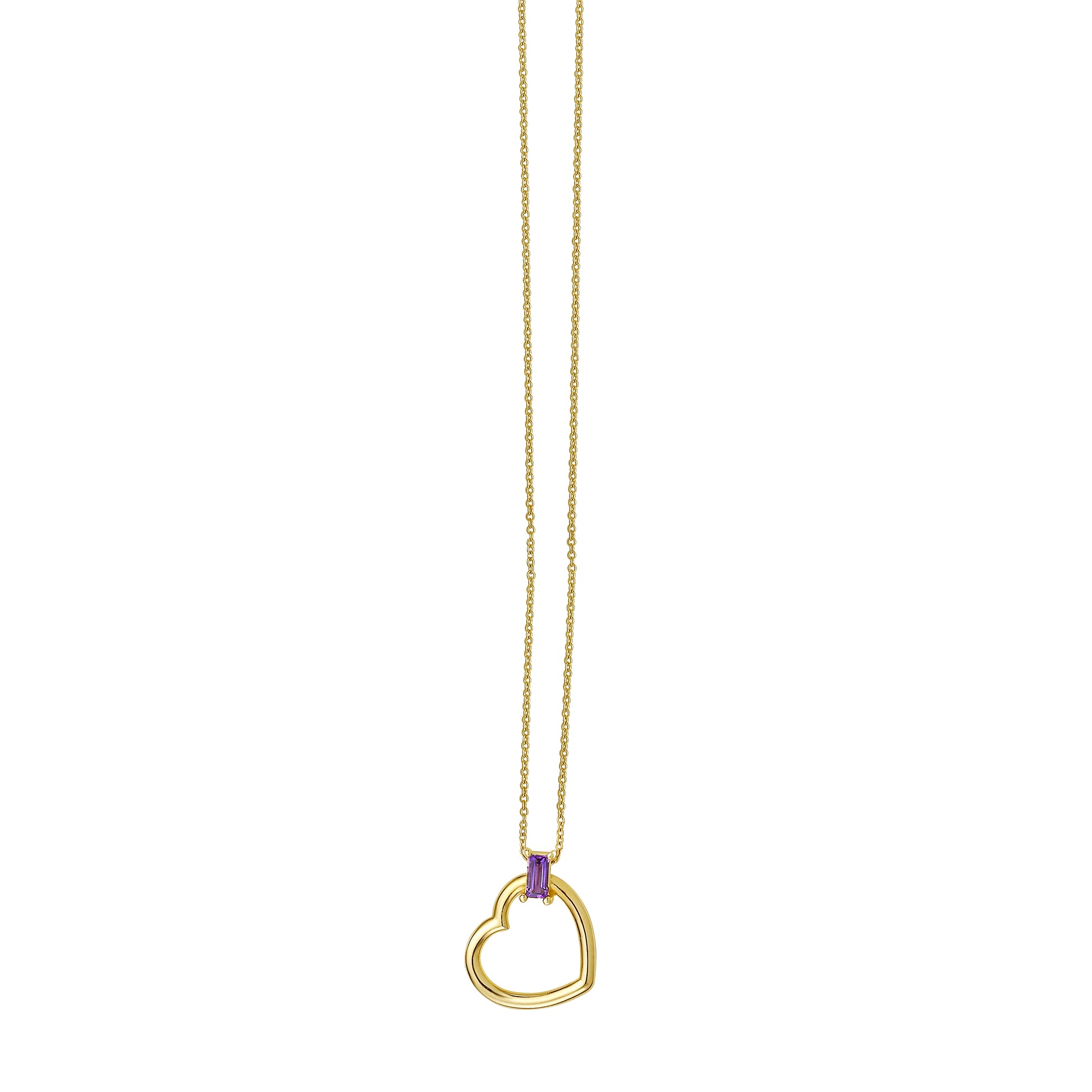 14K Baguette Gemstone Heart Necklace