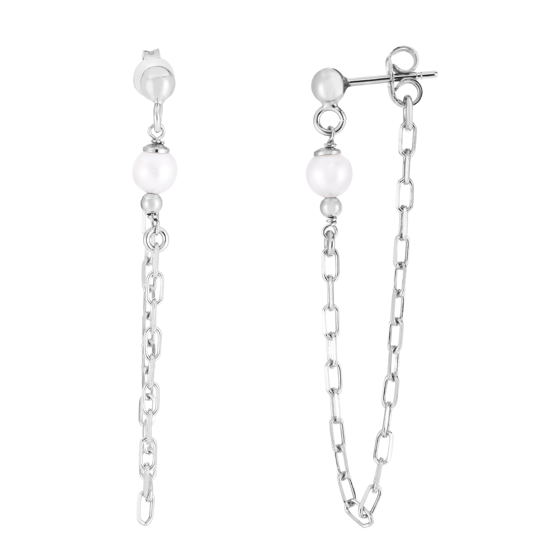 Silver Pearl Chain FronttoBack Earrings